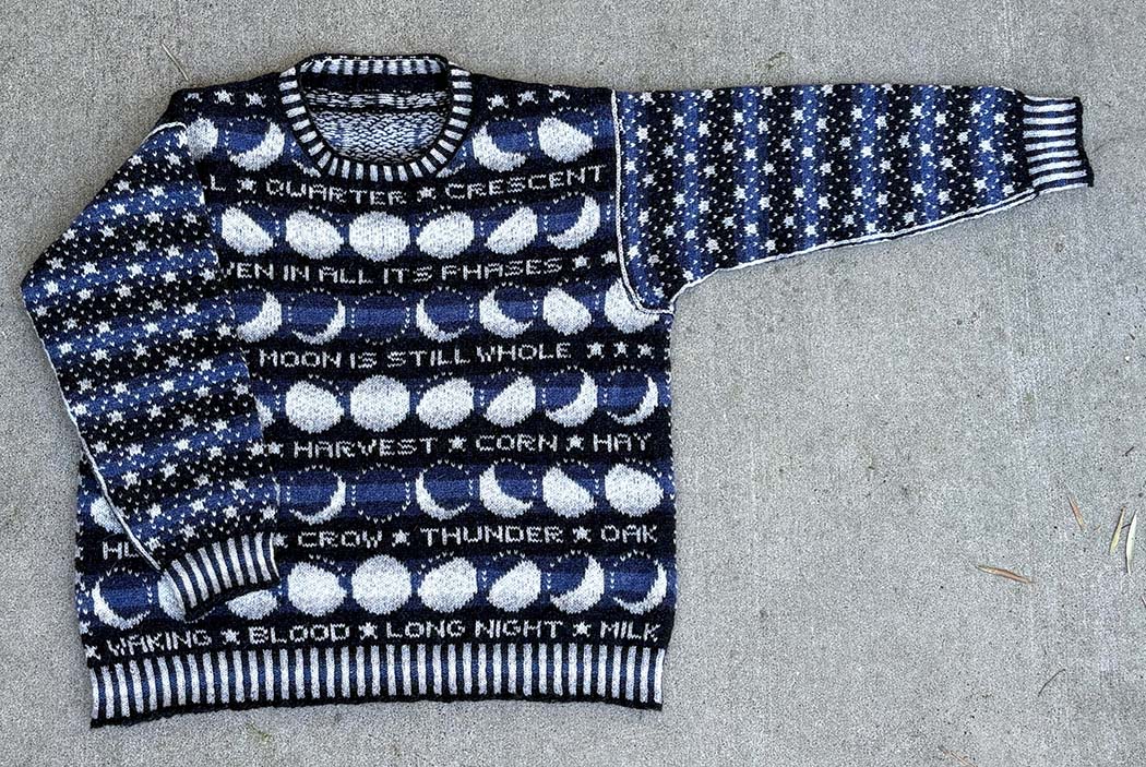 This snippet of poetry inspired the Luna Sweater, a celebration of the phases of the moon, the many names humans have assigned them, and the possibilities of growth.